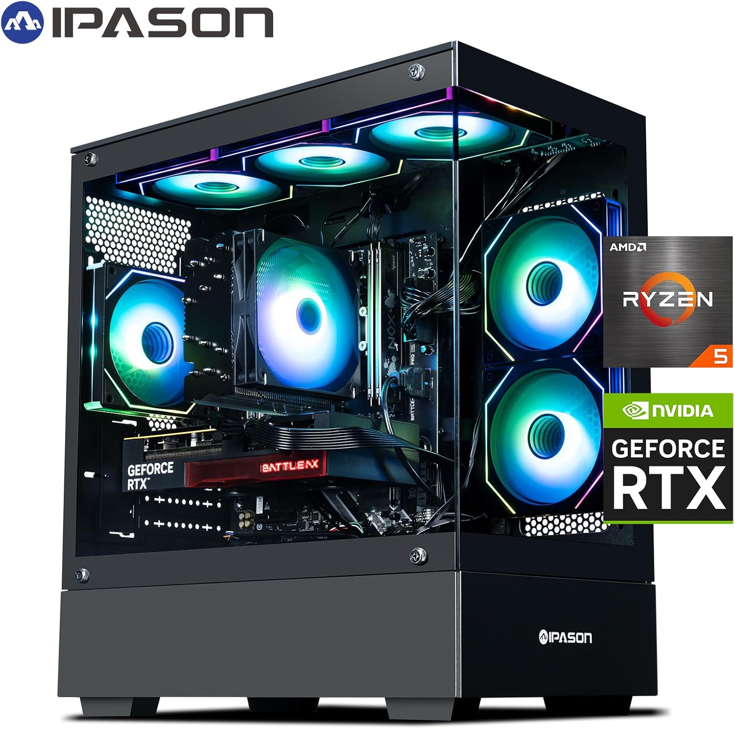 IPASON Gaming Desktop PC Ryzen5 9600X,Geforce RTX 5060 8G,B650M,16GB DDR5,1TB NVMe,650W Gold PSU,Wi-Fi,6 Copper Tube Air coolerCooler,ARGB Fans Windows 11 Prebuilt Gaming Pc New Computer