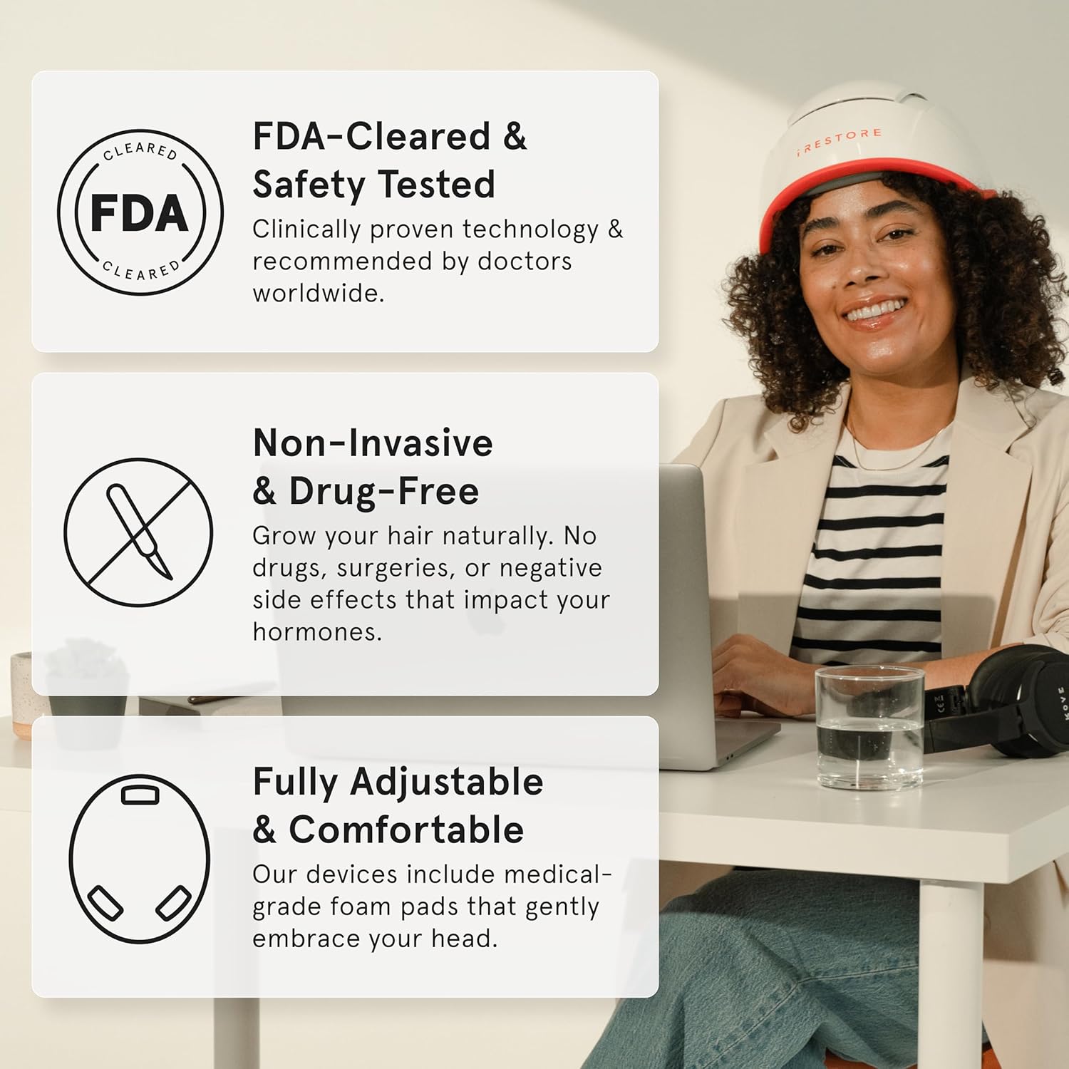 Hair loss at any age can leave you struggling with confidence, and we believe that safe and effective hair growth should be accessible to all. With iRestore, we have created a product designed for convenience and affordability, which can be used on-demand in the comfort of your home.