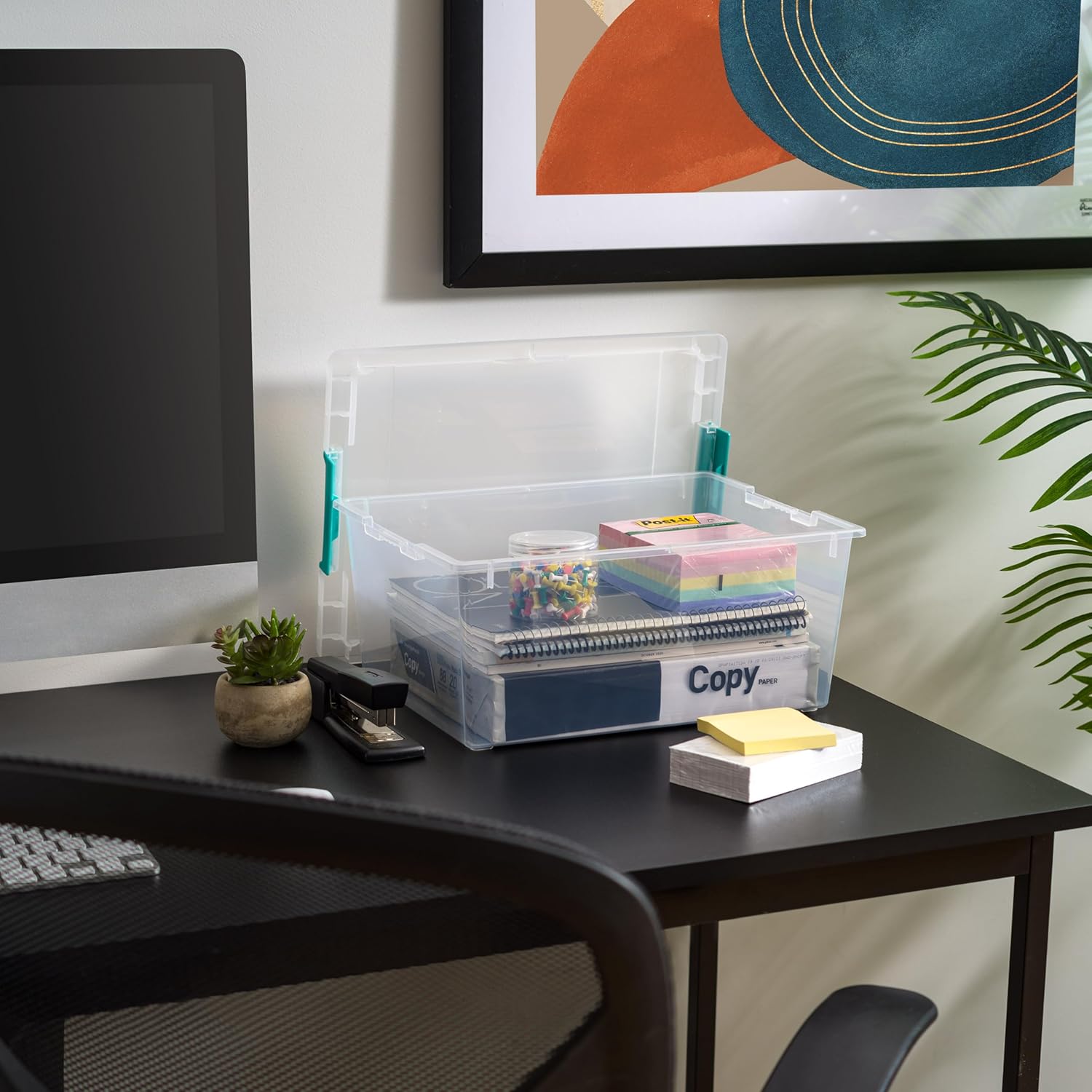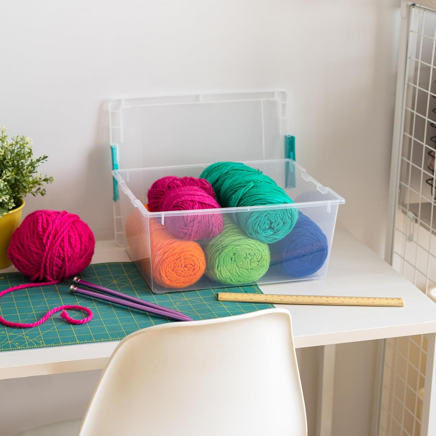 IRIS USA 12 Qt. Plastic Storage Bins Containers with Lids, 4 Pack, Small Sensory Bin, Craft Storage, Craft Organizers & Storage, Organizing Container for Home, Office & Art Supplies, Stackable, Clear