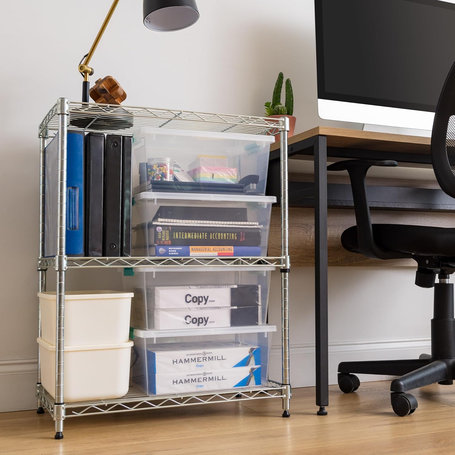 MULTI-PURPOSE BINS: This flat storage container box is a perfect storage solution tool to store variety of items at your home, office or dorm. This storage container conveniently accommodates standard (8.5 X 11) paper, files, documents, notebooks, craft and art supplies.