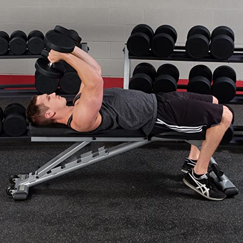 ironcompany Body-Solid SDP Commercial Round Head Rubber Dumbbell Set – 5-75 lbs (15 Pairs) – for Clubs and Home Gyms