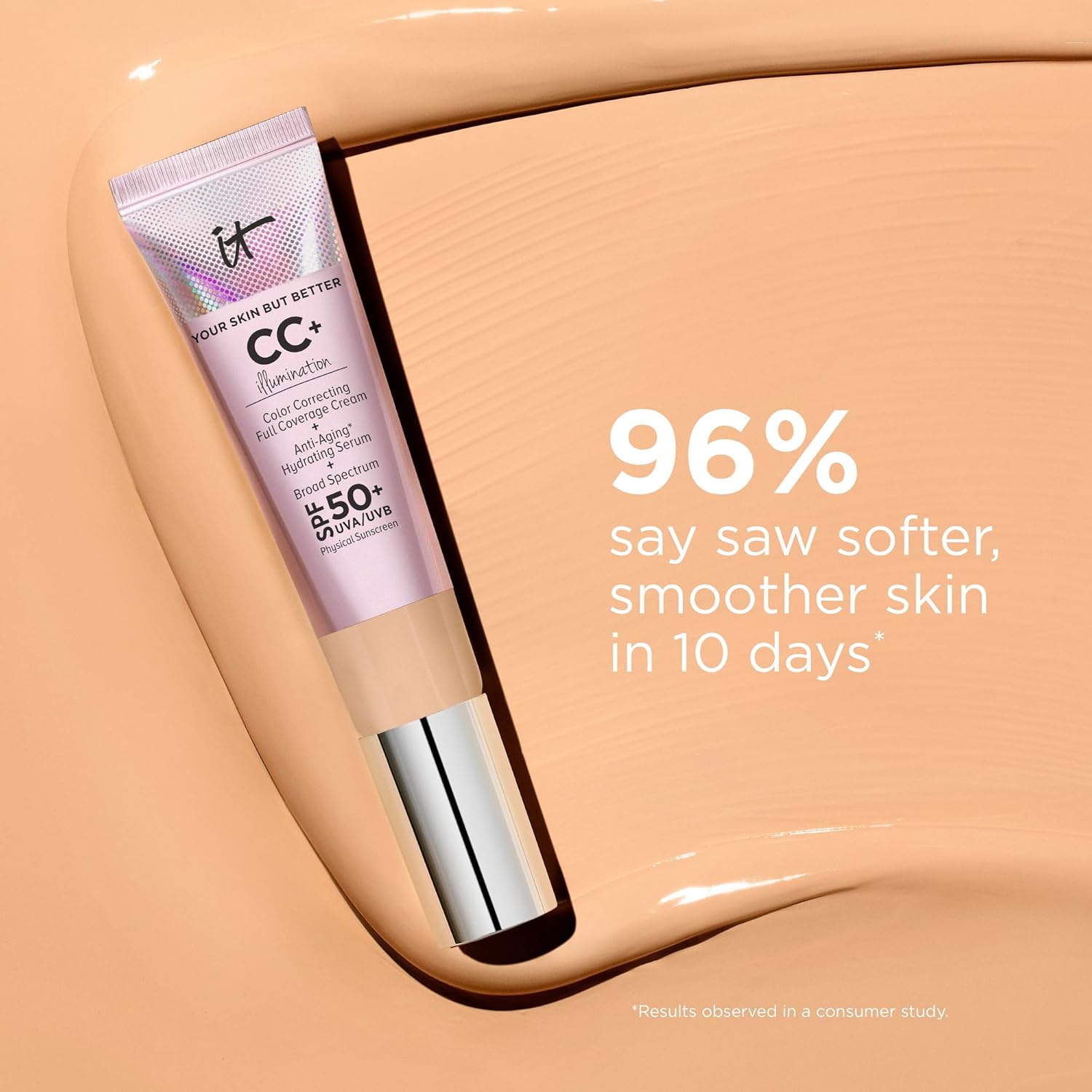 IT Cosmetics CC+ Cream Illumination – Radiant Full Coverage Foundation With SPF 50+, Color Corrector & Hydrating Anti-Aging Serum, Hydrolyzed Collagen + Peptides, Normal to Dry Skin – 1.08 fl oz