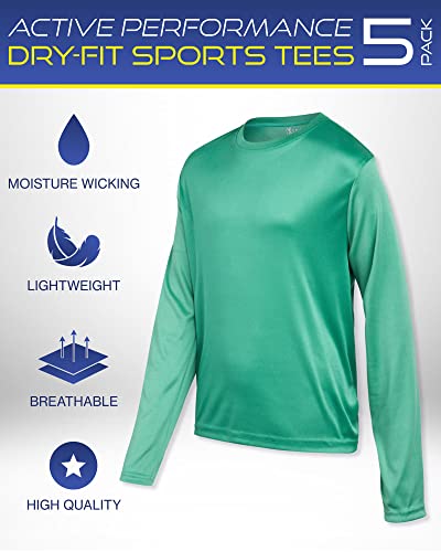 iXtreme Boys Long Sleeve Shirts – 5 Pack Lightweight Moisture Wicking Pullover T Shirt – Long Sleeve Athletic Shirts for Boys, Size 16-18, Black/Green/Royal/Grey/Red