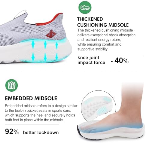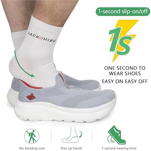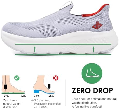 JACKSHIBO Mens Slip in Free up Hands Shoes Wide Toe Box Arch Support Orthopedic Walking Sneakers Cushioned Thick Zero Drop Sole Metatarsal Pads