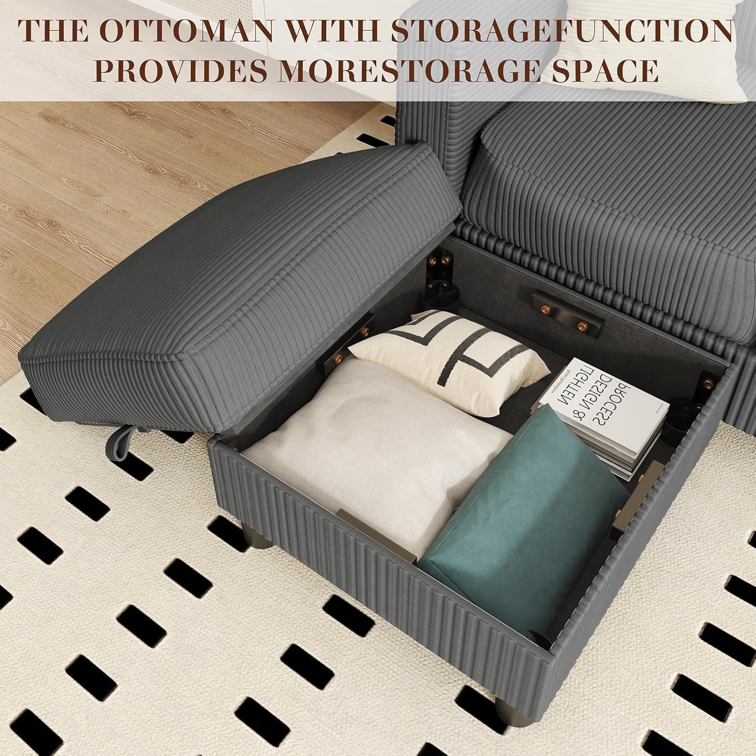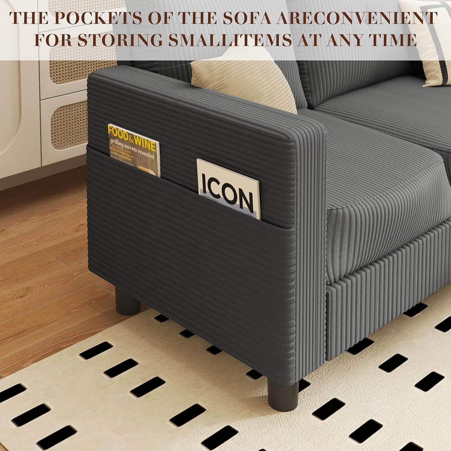 Cloud-Like Comfort with Premium Texture: Unlike stiff standard sofas, this sectional features soft, corduroy fabric that is skin-friendly and wear-resistant. The high-density foam cushions provide the perfect balance of bounce and support, ensuring you won’t sink in after long-term use. Ideal for movie marathons or relaxing after a hard day’s work