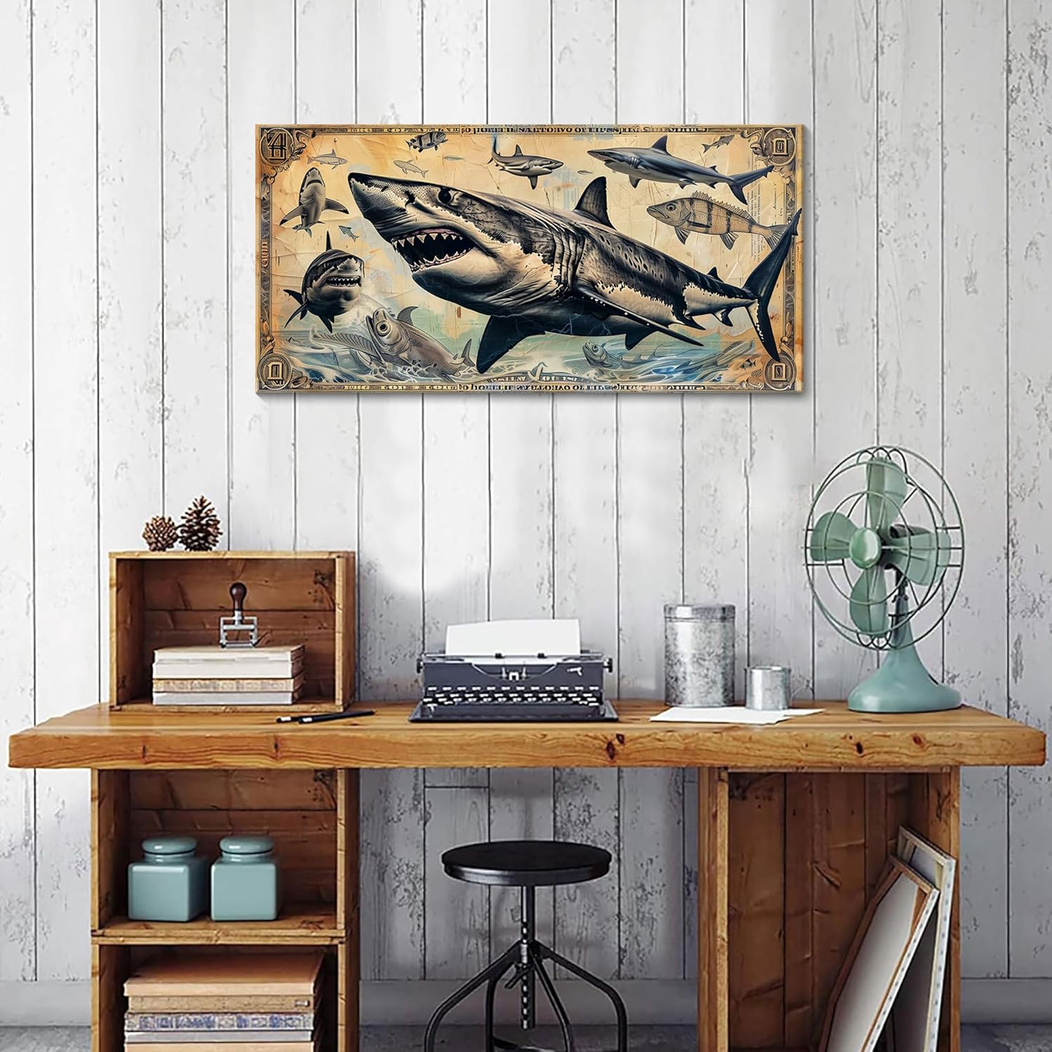 Thematic Appeal: Sharks are often associated with strength, power, and the mysterious depths of the ocean. This mens wall decor can appeal to those with an interest in marine life, adventure, or who simply want to add a bold statement piece to their space.