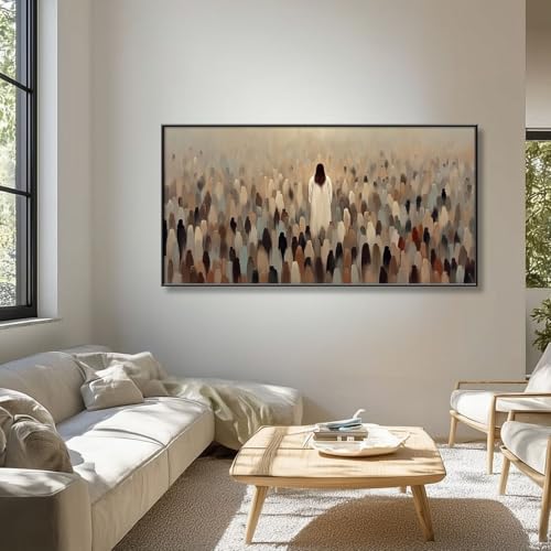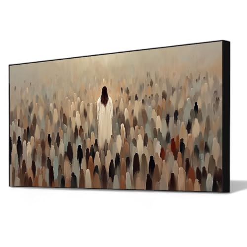 Jesus Feeds the 5000 Wall Art,Catholic Art,Bible Faith Decor,Jesus Canvas,Religious Decor,Christian Posters,Pastel Abstract Wall Art for Prayer Room,Living Room,Bedroom,Prayer Closet,Ready to Hang (Black Frame, 62″ L x 31″ W – 160x80cm, Framed)