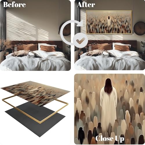 Multiple Size Options: The jesus christ wall art offers a variety of sizes-23″Lx12″W,31″Lx15″W,39″Lx19″W,47″Lx23″W,55″Lx27″W,62″Lx31″W,71″Lx35″W.Whether it is the bedroom, or living room, there are suitable options to light them up instantly