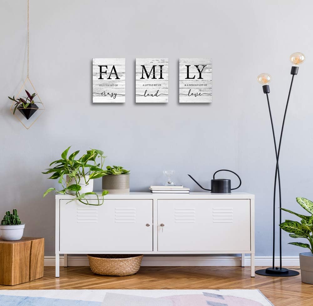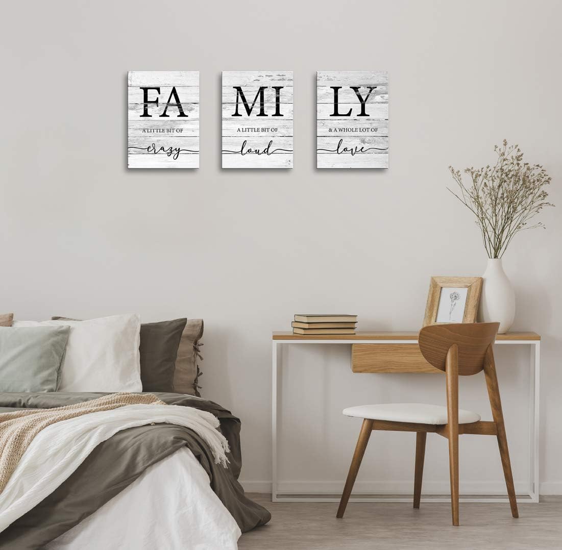 JLXART Family Wall Decor, Rustic Farmhouse Decor for The Home Art, Inspirational Canvas Print Framed (Family, 12 X 16 x 3 Pieces, Framed)