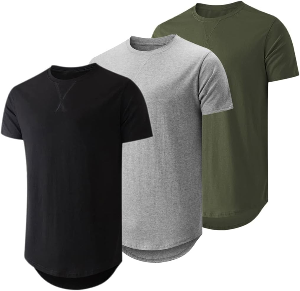 JMIERR Mens 3 Pack Cotton Hipster Hip Hop Longline Crewneck T-Shirt
