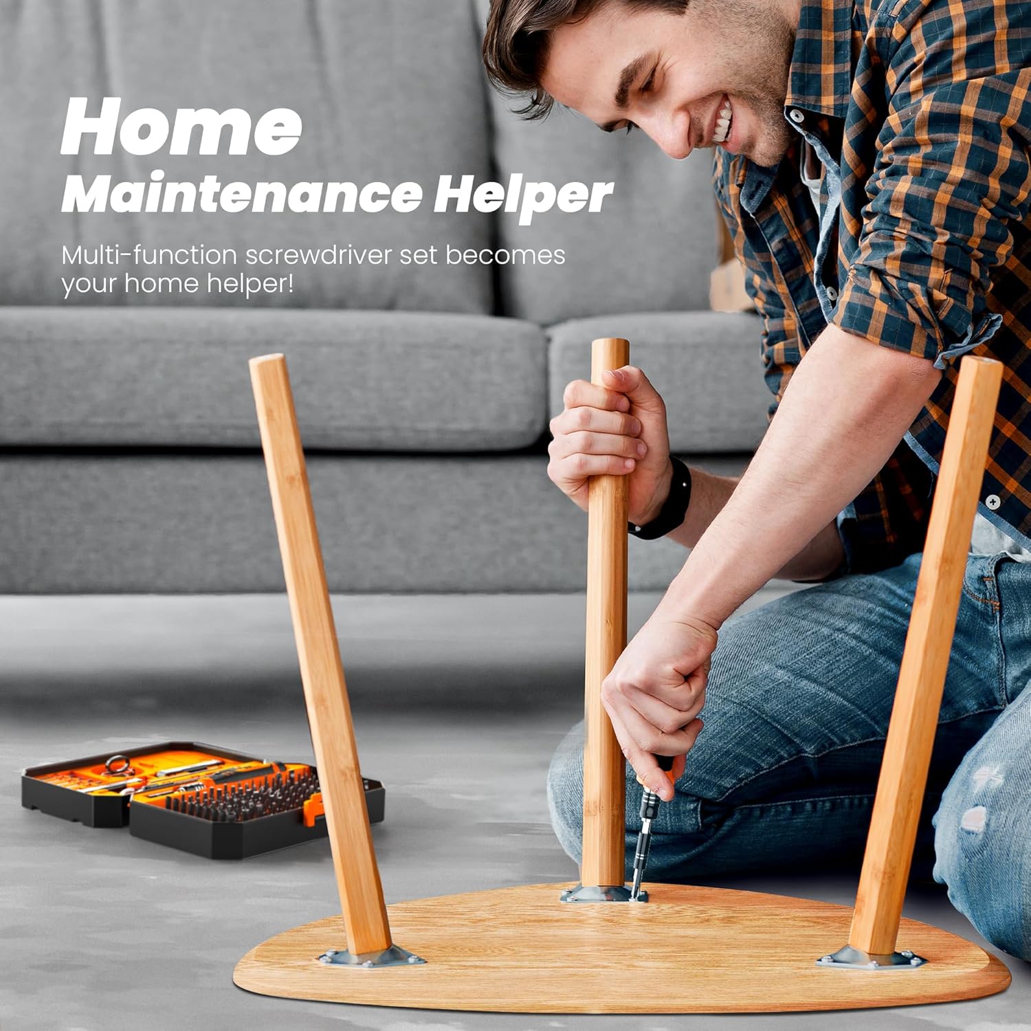 【Upgraded Household Screwdriver Set】①Thicker handle for better grip; ②Added storage compartment for easy organization of small screws and spudgers; ③115 in 1 small precision screwdriver set with 103 magnetic bits,covering common bits like Torx/Phillips/Slotted/Triangle /Hexagonal etc., and new specialty bits(Clutch/3-Points/Inner Cross) is added, oriented to the assembly and repair of home tables and chairs.