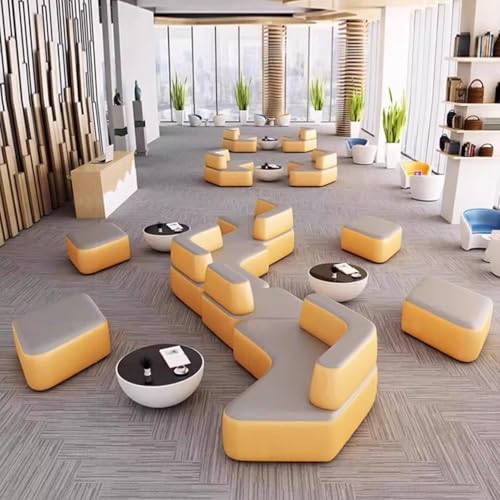 JOSOGO Creative Asymmetrical Leather Sofa Set, Modern Minimalist Office Furniture for Reception, Lounge Area, Hotel Lobby, Commercial Waiting Zone, High-End Design(D)