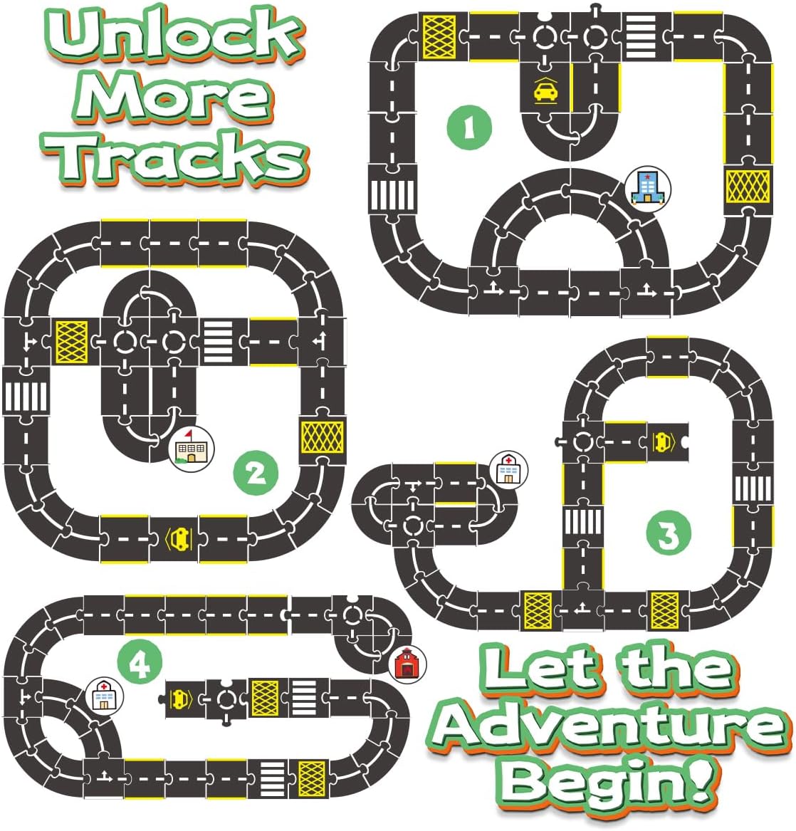 Jovi-mindly &Notchies 39 Pieces Cardboard Road Puzzle Car Track Flexible Race Track for Kids Car Truck/Kids Travel Toys/Stem Toys Activities for Ages 3+ Boy and Girl