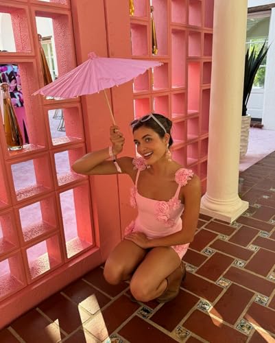 JW PEI Women’s Elaina Pink Rosette Applique Mini Dress-Pink