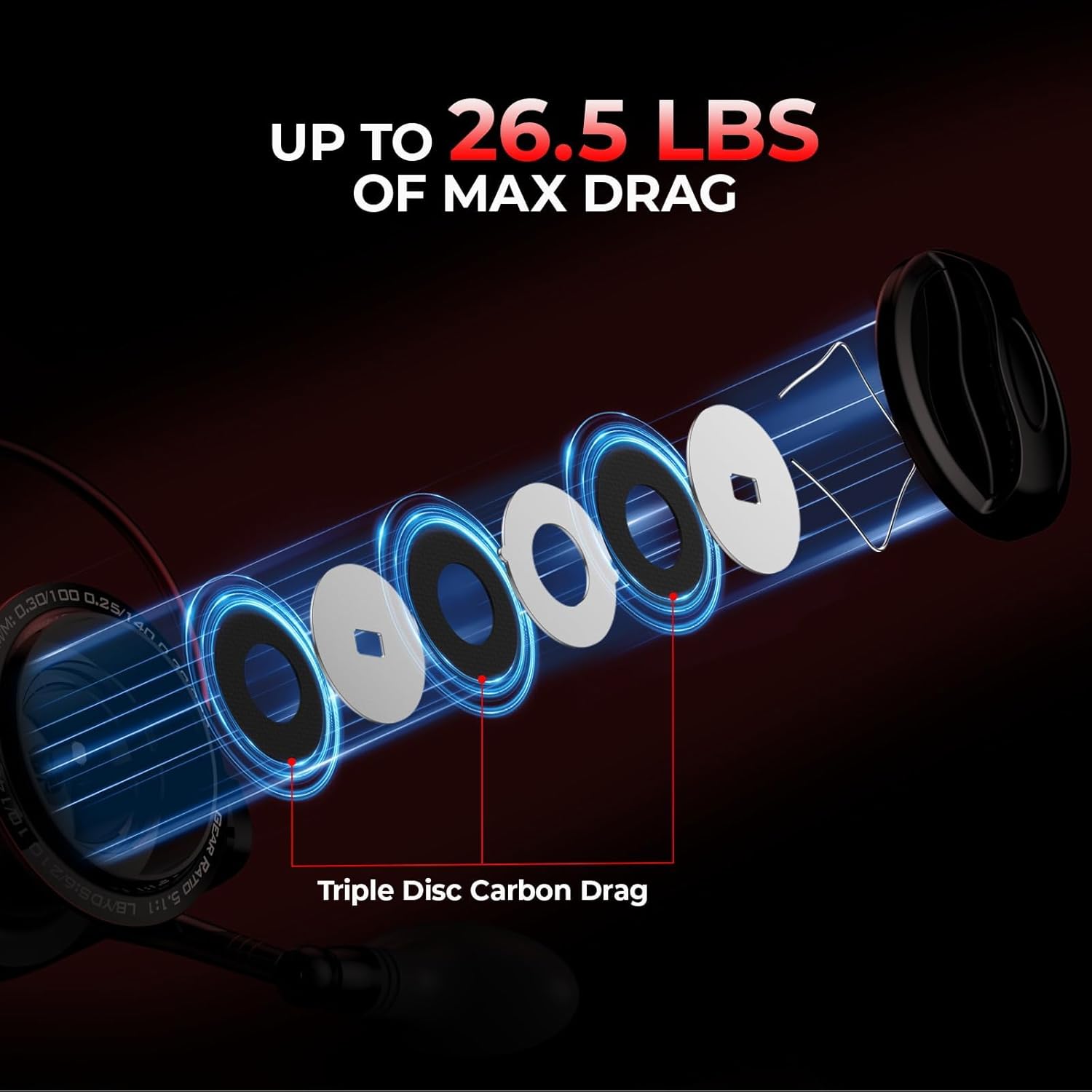 POWERFUL-The Sharky Baitfeeder spinning reels have carbon fiber drag washers for up to 26.5 Lbs/ 12 Kg of the smoothest fishing reel carbon drag on the fishing tackle market.
