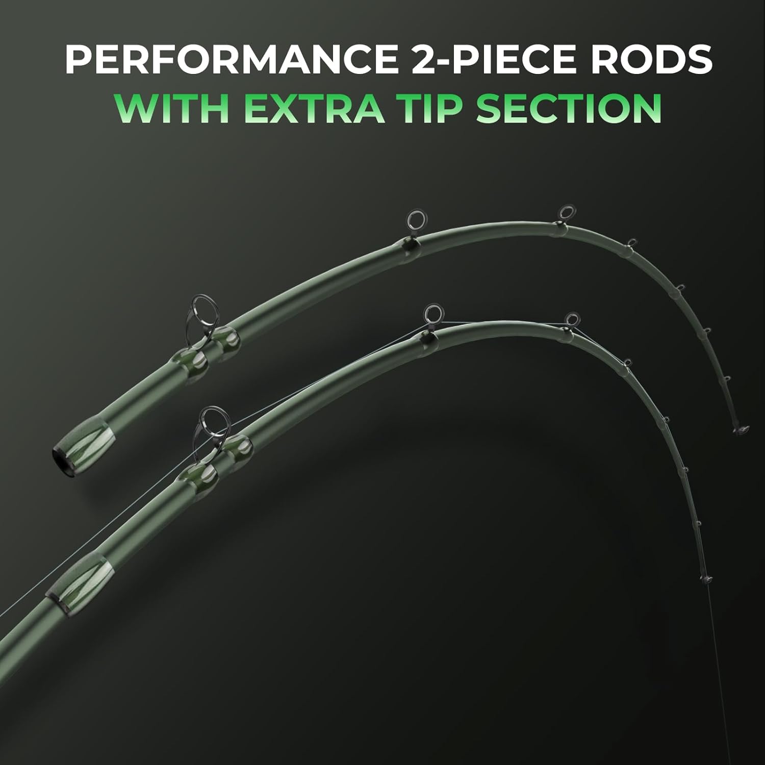 Extra Tip Section for Backup – The KastKing Spartacus II Twin-Tip Spinning and Casting Combo offers 13 size options, with 7 spinning and 6 casting combos available. Each fishing combo features a 2-piece design and includes an additional tip section of the same action, providing anglers with backup and added reliability during their fishing trips.