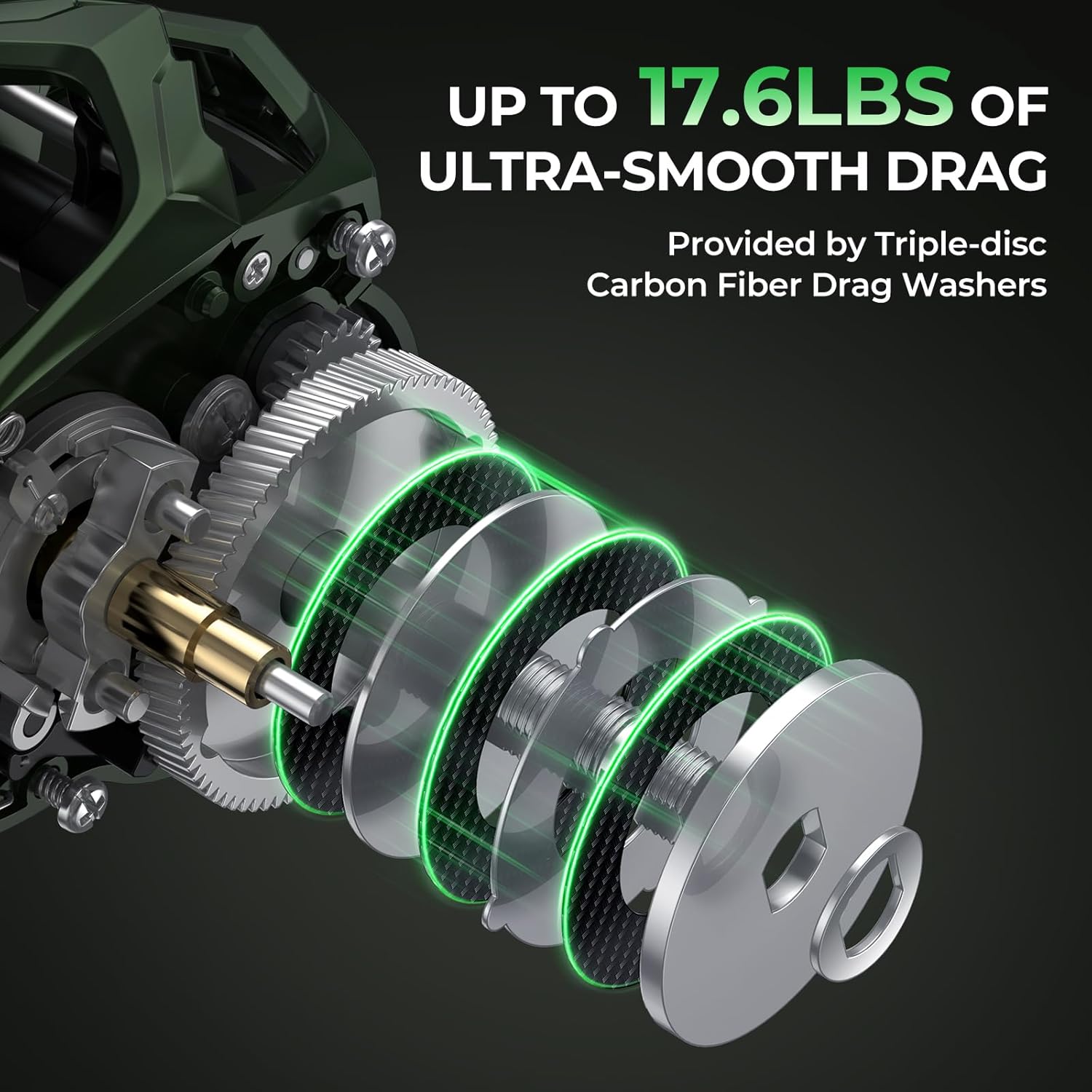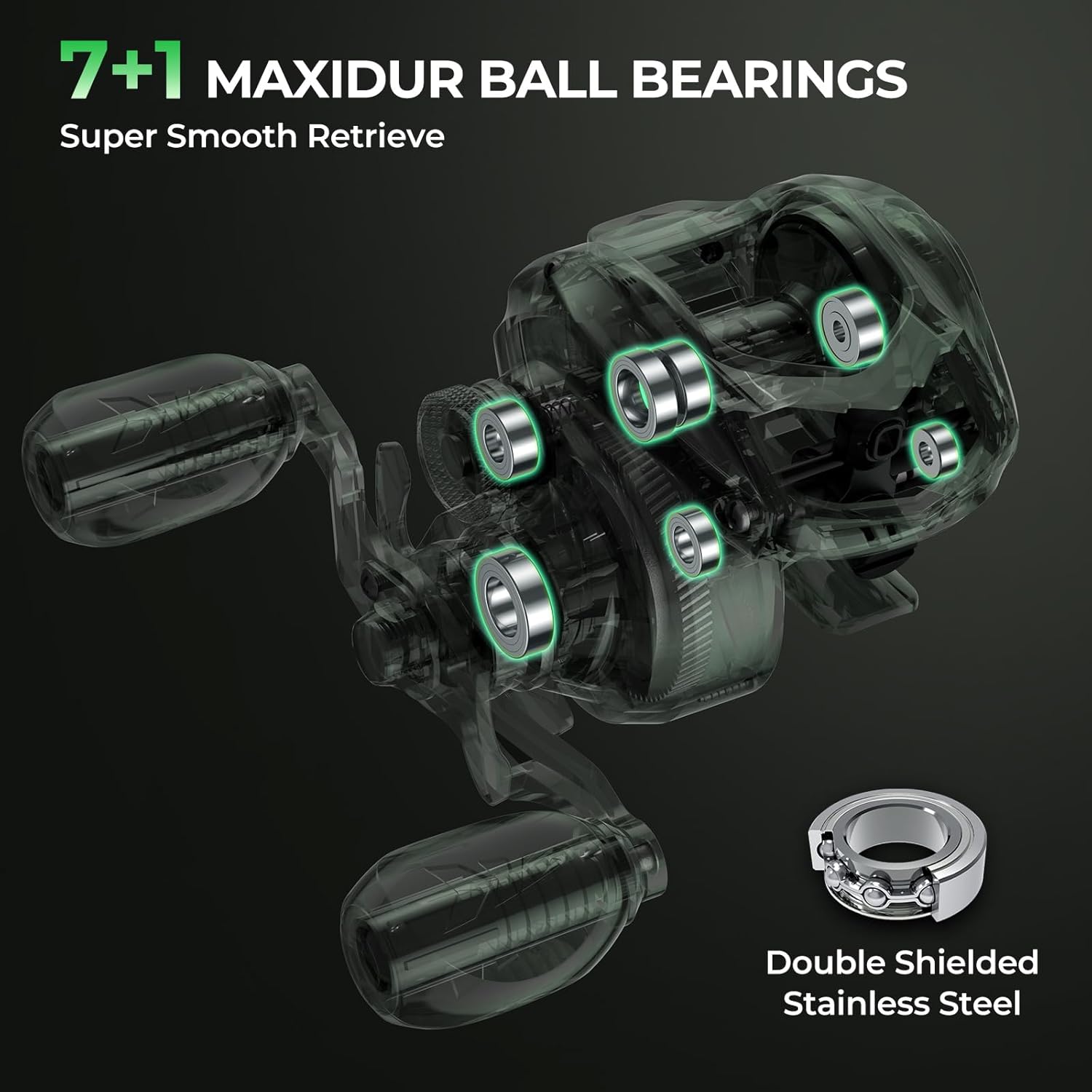 High-Performance Spinning Reel: The Spartacus II spinning reel is a powerhouse. The 7+1 MaxiDur bearing system provides ultra-smooth casting and retrieval. With 22 pounds of max drag power, I could easily tackle tough catches. The 5.2:1 gear ratio ensures a fast line retrieve, and the durable construction with zinc alloy main gears, stainless steel main shafts, and precision brass pinion gears guarantees long-lasting performance. Reeling in is smooth and fast. I mean it has everything and more to provide a pro level fishing experience.