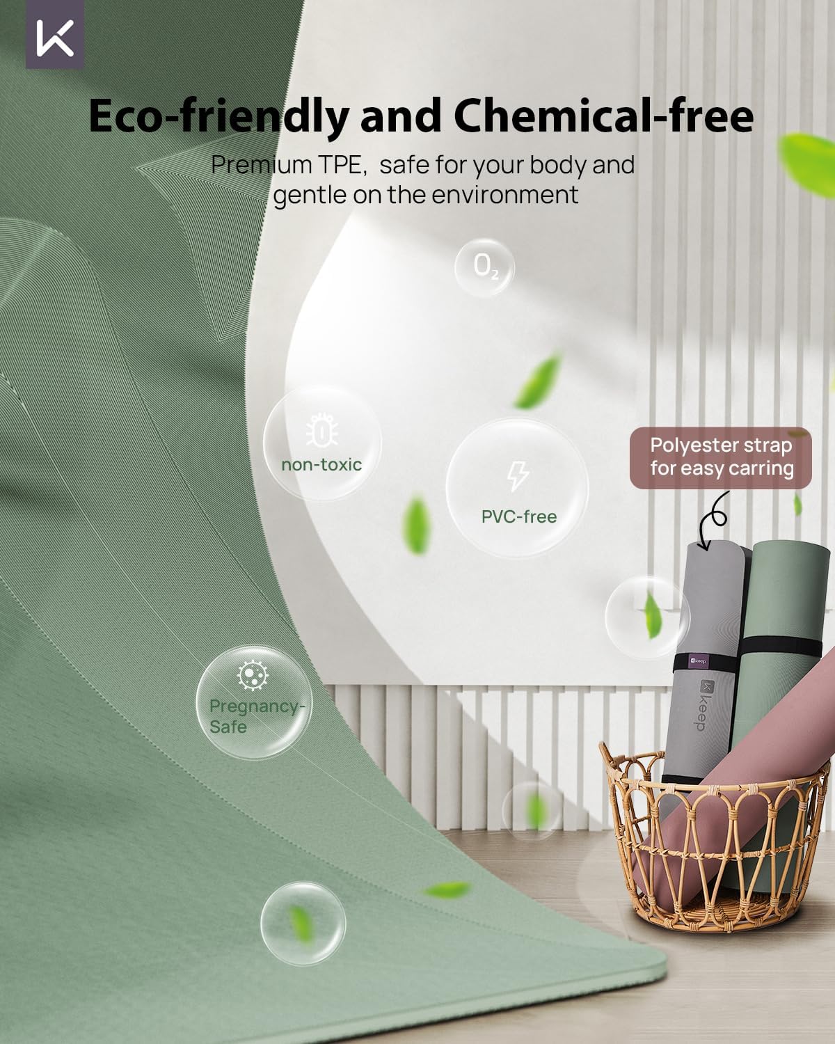 Planet-friendly Comfort for Body and Mind — Crafted from premium TPE, making it both eco-friendly and chemical-free. This yoga mat is free from plasticizers and formamide, ensuring it’s safe for your body and gentle on the environment. Not only offers superior cushioning and grip but also ensures durability and long-lasting performance