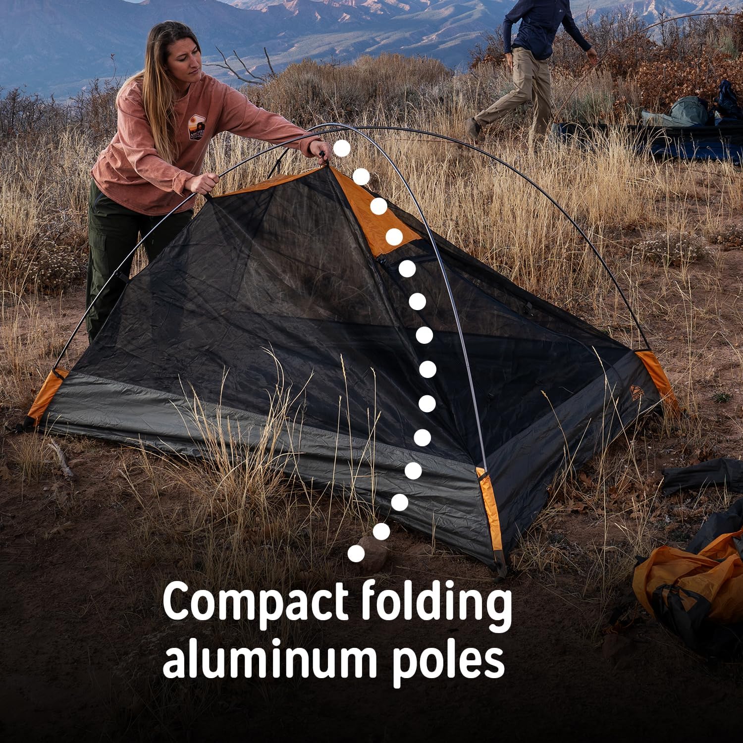 Dependable Materials: 2 compact folding, DAC pressfit aluminum poles, weather resistant and long lasting 68D polyester tent floor and rainfly fabric, and fully seam taped construction. Color coded clip and fly attachment for simple set up.