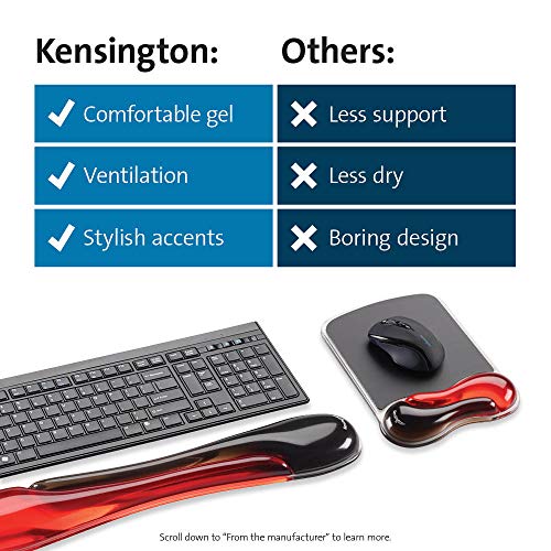 Kensington Duo Gel Mouse & Keyboard Wrist Rest Bundle Set, Ergonomic Keyboard and Mouse Pad With Wrist Support, Keyboard Wrist Rest, Computer Keyboard Pad, Cooling Gel, Non-Skid Backing, Red K50036WW