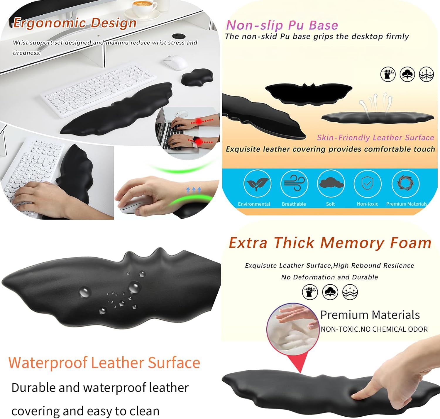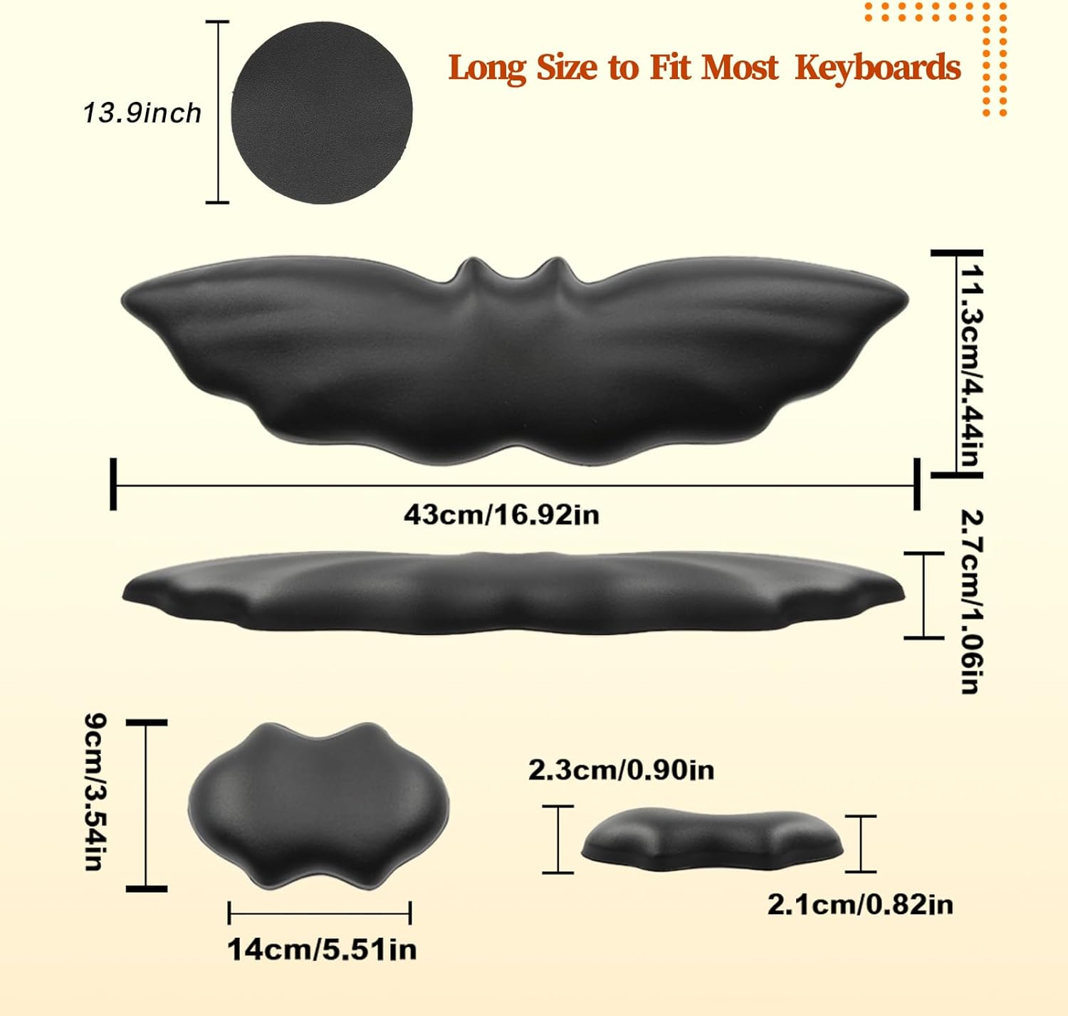 Soft Breathable Leather Surface: bat-shape keyboard wrist rest is made of water-resistant and sweat-proof vegan leather, easy to clean,long size to fit most keyboards