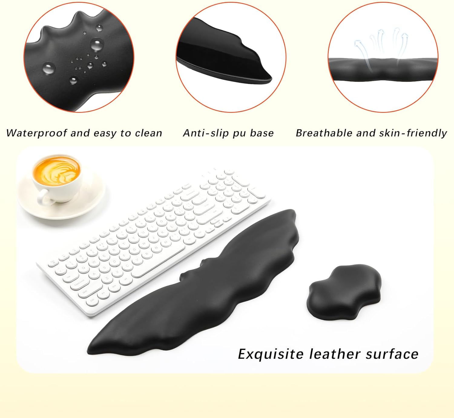Soft Leather Wrist Rest Set: It comes with cloud keyboard wrist, mouse wrist rest and cloud coaster. The cloud-shaped pad enhances the users’ visual aesthetics and experience,anti-slip pu base breathable and skin-friendly