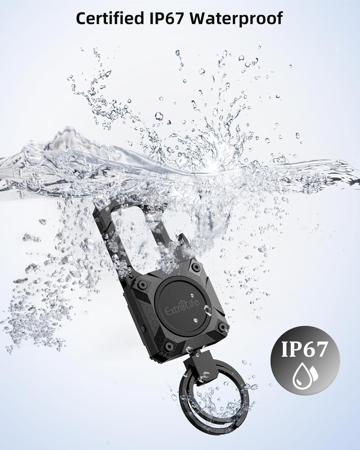 【Certified IP67 Waterproof】with an IP67 rating, The key finder is completely protected against dust, and withstands immersion in water up to 3 feet for 30 minutes. Whether you are cycling outdoors or traveling internationally, the key tracker will accompany you all the way regardless of wind or rain.