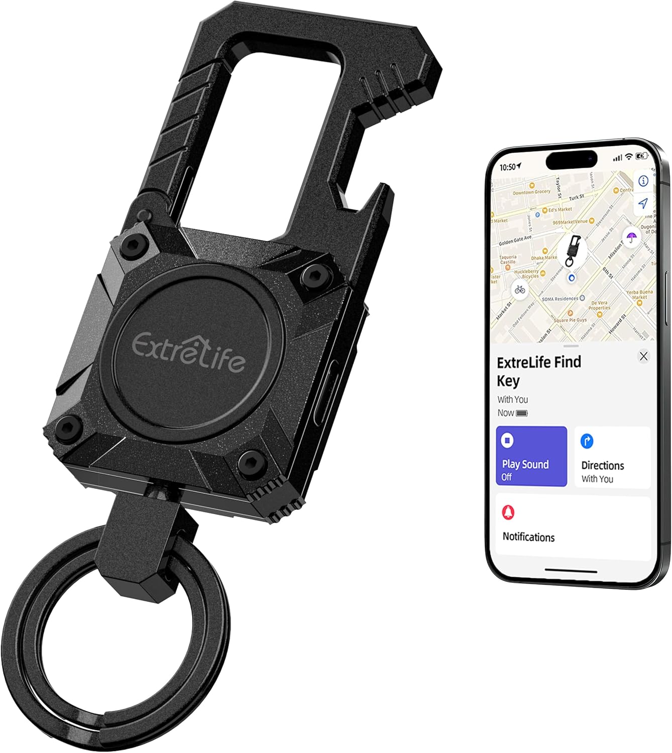 【Works with Apple Find My】 For iPhone owners,the Extrelife’s latest Keychain is an easy top pick for tracking and locating your Key and items. With Apple’s Find My network has by far the largest number of devices, makes it more likely that you’ll recover what you’ve misplaced. It comes with 2 key rings and carabiner, so just connect and go.