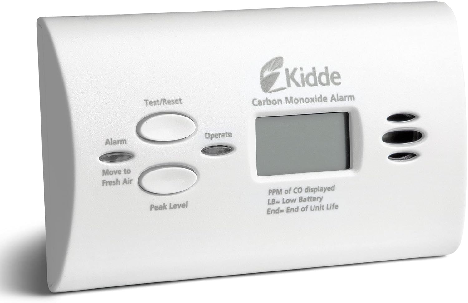 The Kidde Carbon Monoxide Detector, AA Battery Powered CO Alarm with LEDs, model 900-0146, is a carbon monoxide detector that uses electrochemical sensor technology to detect carbon monoxide. The CO detector is powered by 2-AA alkaline batteries located in the back of the unit, providing easy installation & no wiring, plus coverage during a power failure. The alarm is conveniently designed and portable enough for travel – simply install it on a wall or place it on a tabletop. When carbon monoxide is detected, an 85-decibel alarm will sound & a red LED will flash. A green LED indicates that the alarm is receiving power. The test-hush button allows you to test the battery operations as well as temporarily silence the low battery chirp warning. Plus, peak level memory records the last time carbon monoxide was detected or when the unit was last tested. Install a smoke detector & carbon monoxide detector on every level of your home and near bedrooms to help keep your family safe from fire & poisonous gas. UL Certified with a 10-year limited manufacturer’s warranty.