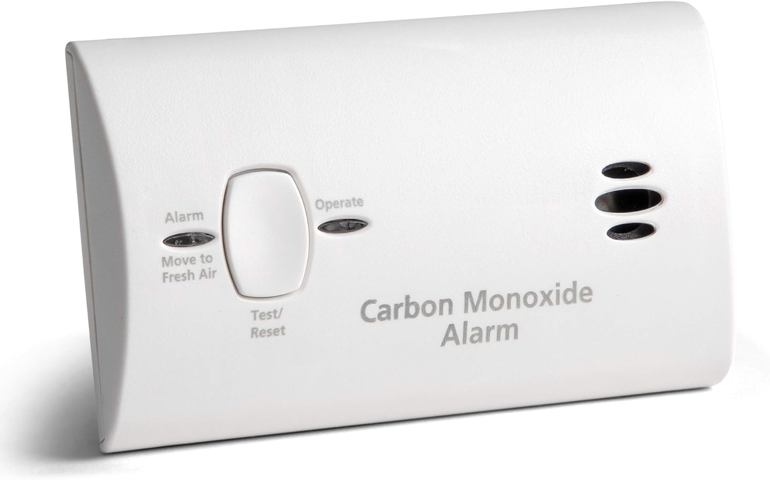 Green LED indicates power to the carbon monoxide detector, while an 85-decibel alarm & a red LED indicates the presence of carbon monoxide