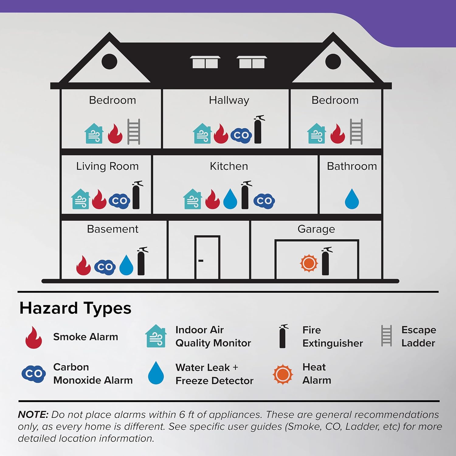 3 LED NOTIFICATIONS: LED lights indicate alarm status, green = normal operation, amber = operating error, red = smoke or carbon monoxide detected & a loud 85-decibel alarm will sound.