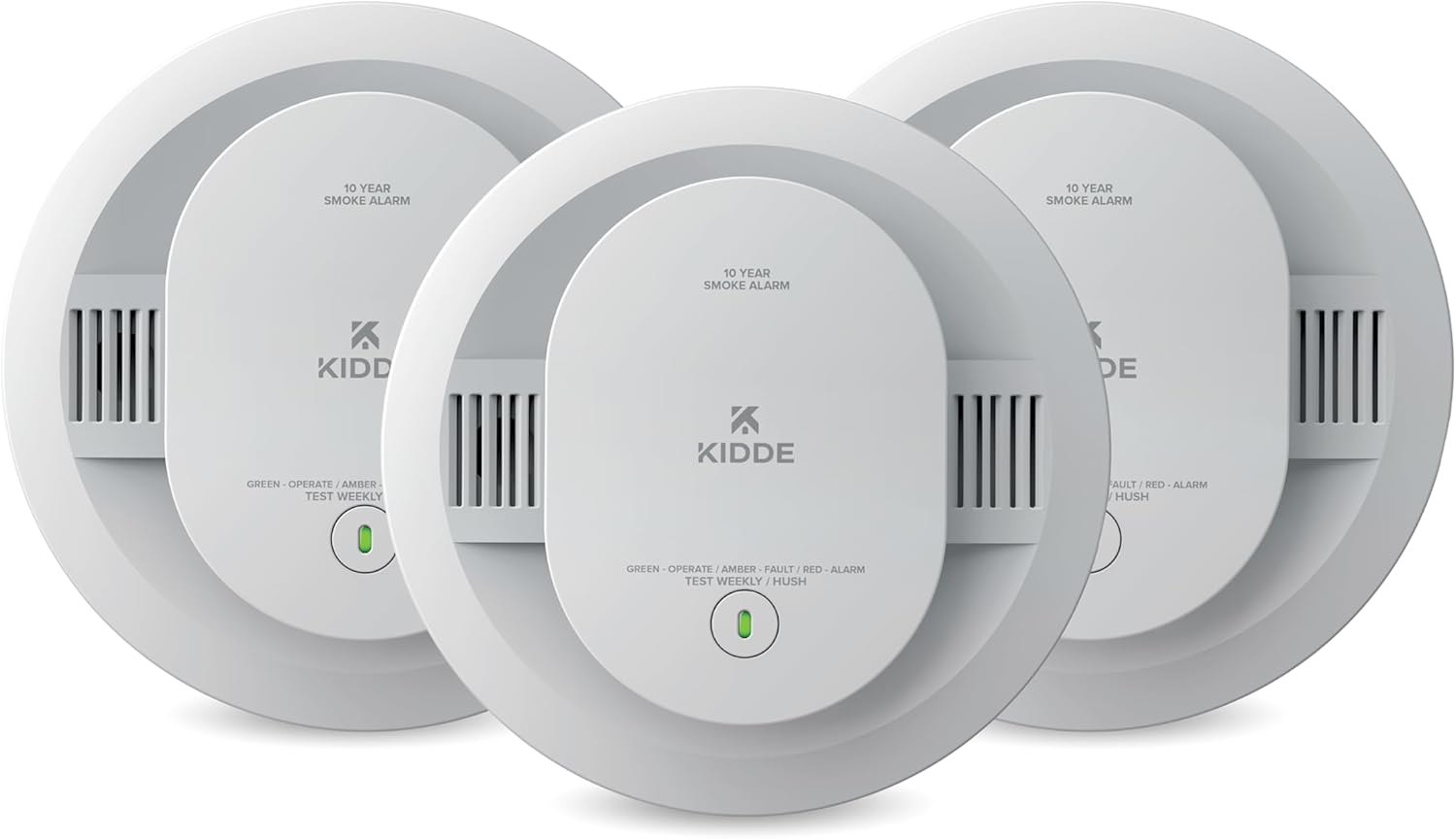 Specification: Kidde Smoke Detector, 10-Year Battery Powered, LED Warning Light Indicators, 3-Pack