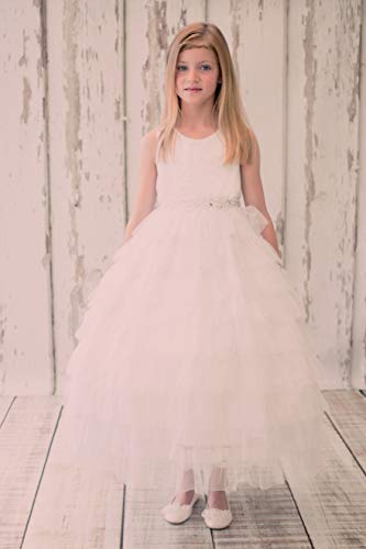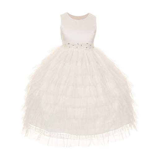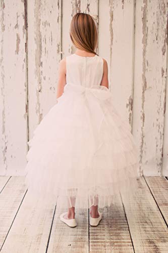 Kid’s Dream Little Girls Ivory Tiered Mesh Flower Girl Dress 4