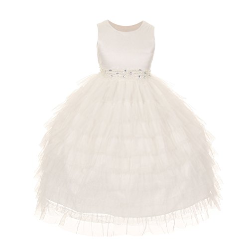 Kid’s Dream Little Girls Ivory Tiered Mesh Flower Girl Dress 6