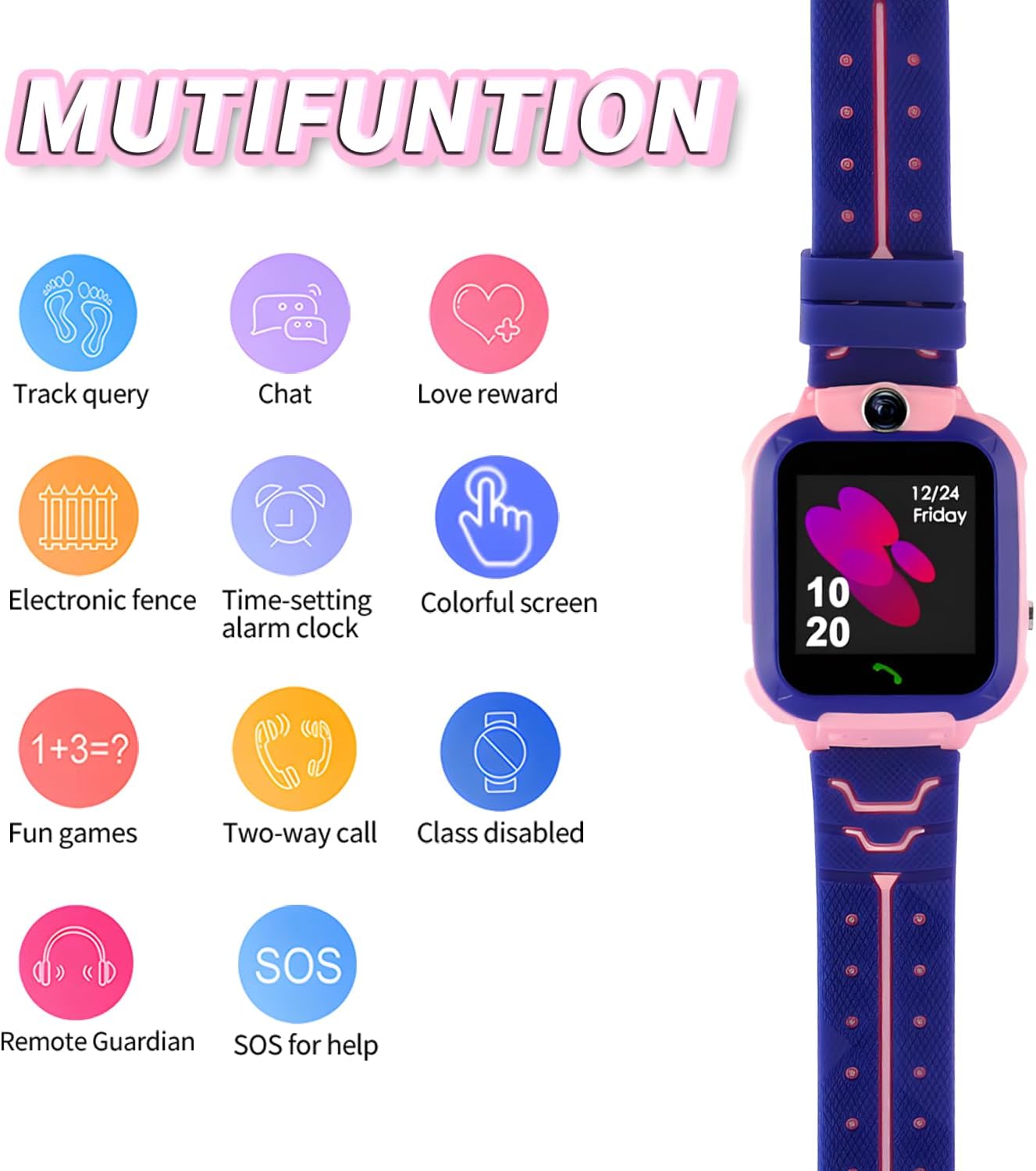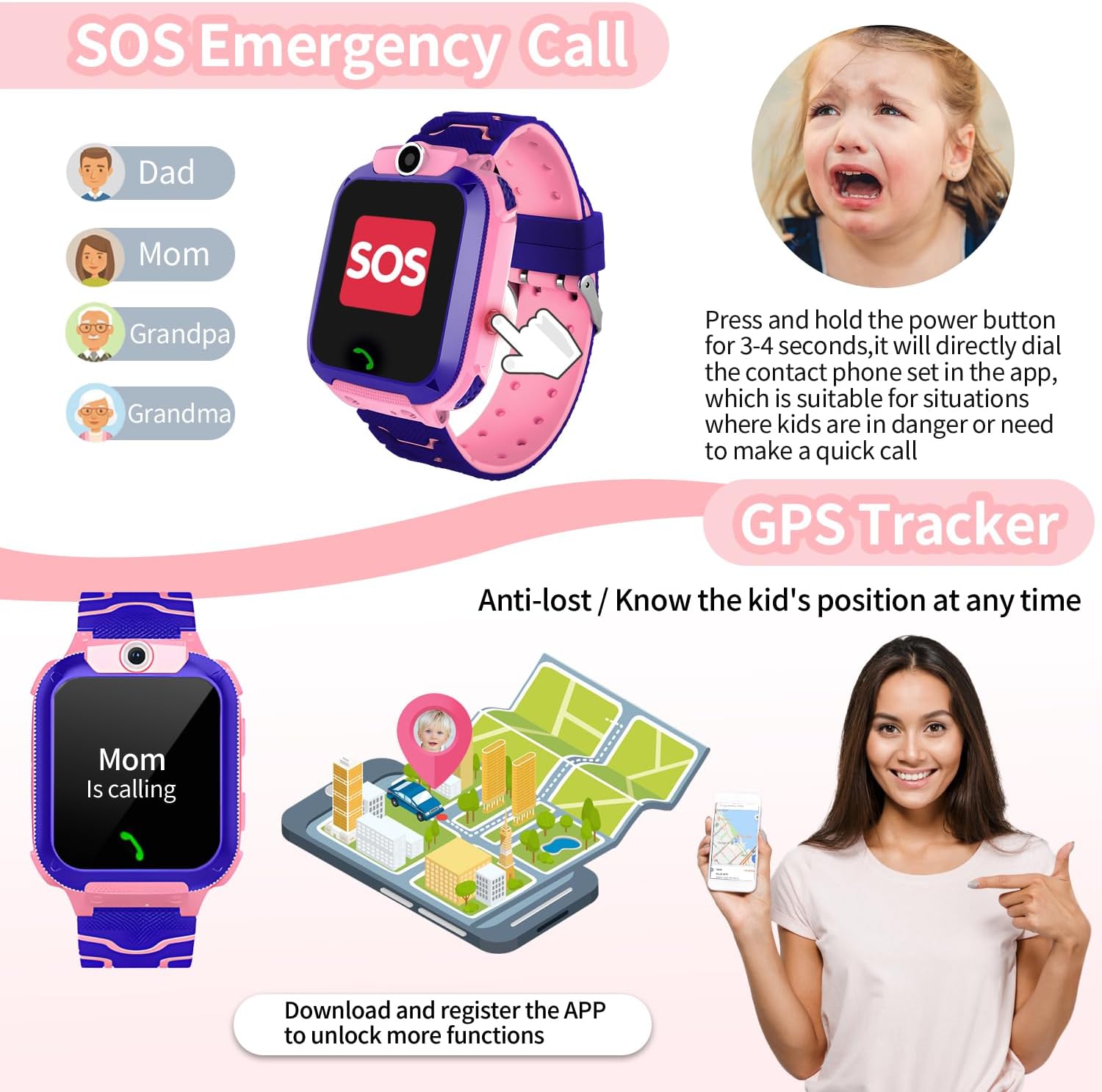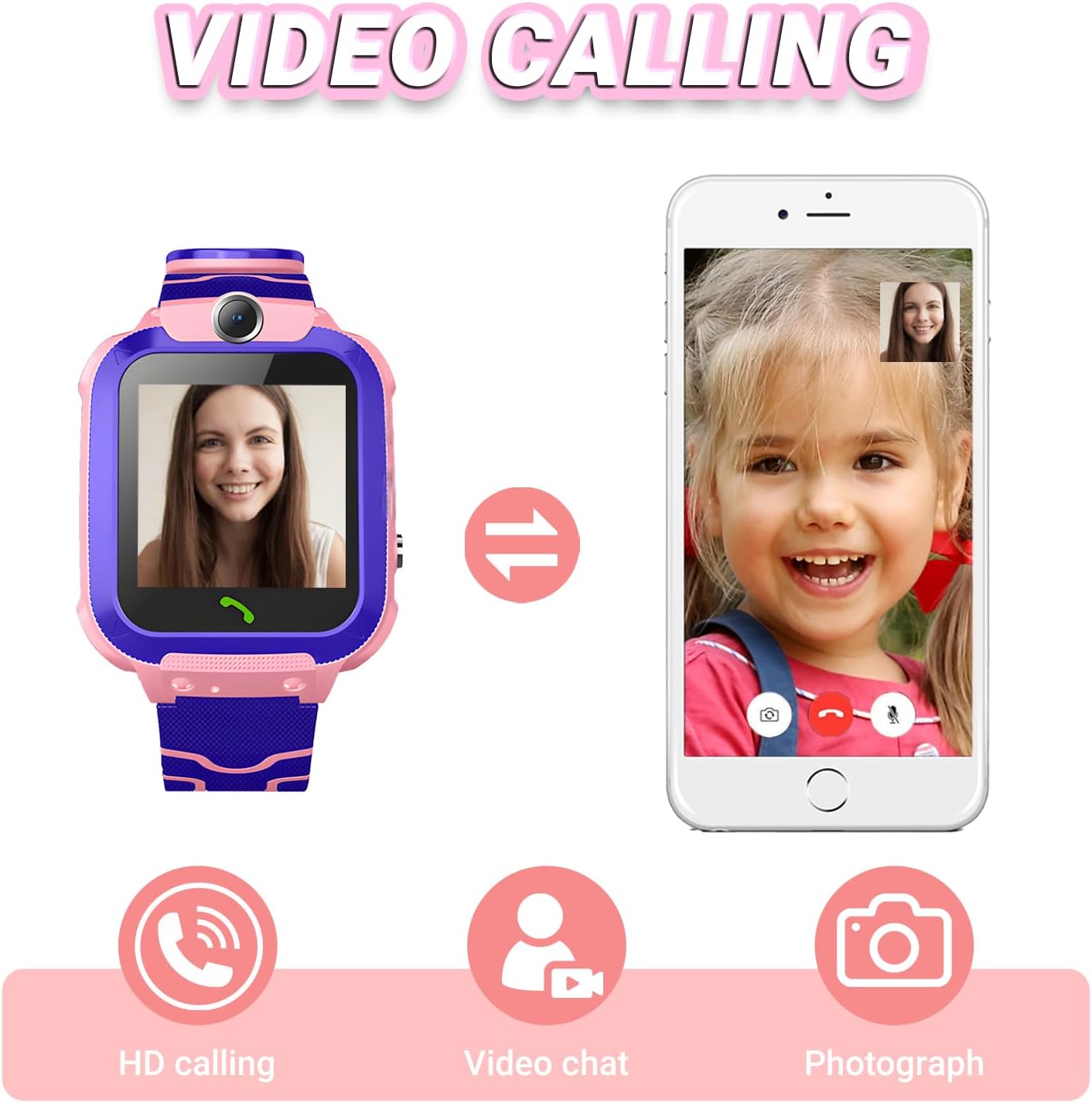 Kids Smart Watch, SOS Emergency Call, Video Calling, Waterproof Activity Tracker for 3-12 Years Girls/Boys – Birthday Gift Idea (Pink)