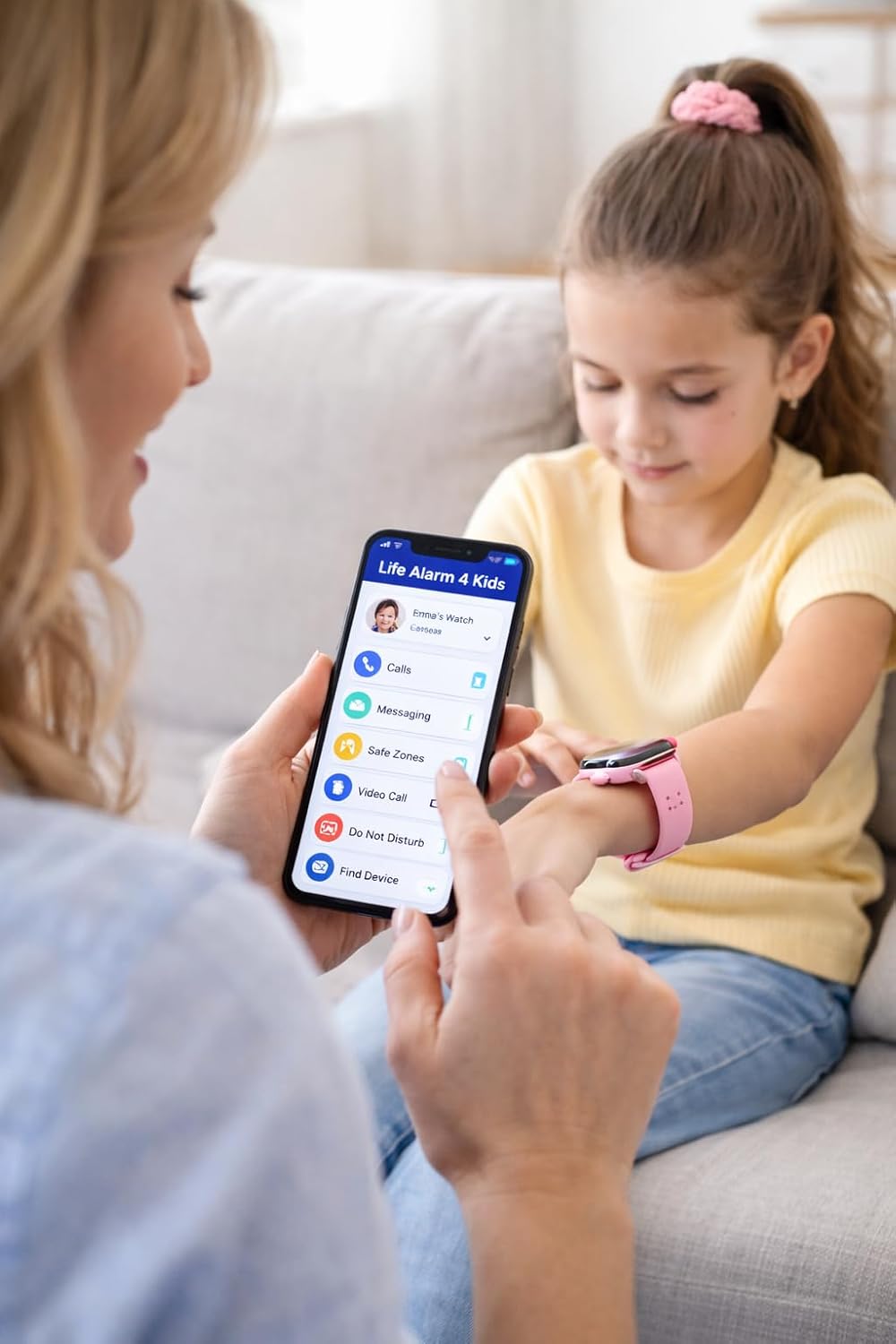 TOTAL PARENTAL CONTROL; Manage safety effortlessly by blocking unknown numbers and setting School Mode with Life Alarm 4 Kids Smartwatch’s GPS tracking watches for kids; The dedicated parent app allows you to control contacts for this smart watch for kids with GPS tracking