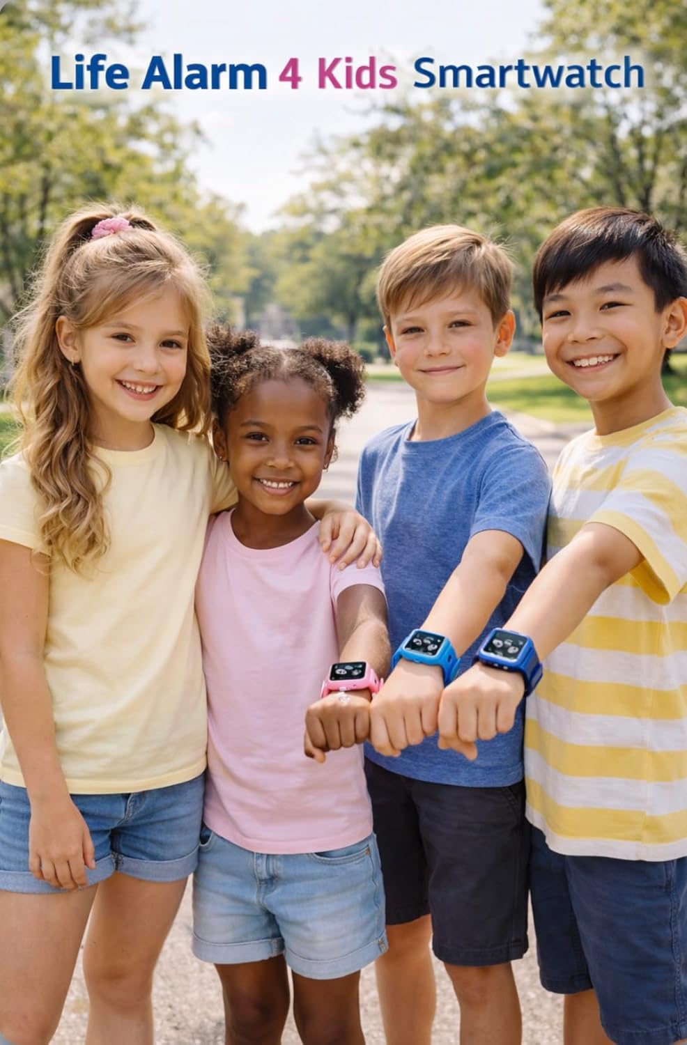 THE SAFEST KIDS WATCH: Life Alarm 4 Kids Smart Watch is here to give parents the peace of mind they deserve. It is equipped with a safety system that includes SOS alerts, GPS SafeZone notifications, and the ablitiy to make emergency calls.