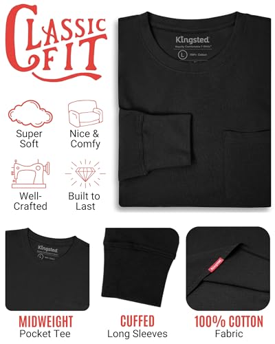 Kingsted Long Sleeve Pocket T-Shirts for Men Pack – Super Soft 100% Midweight Cotton – Well-Crafted Classic Comfort Fit (Everyday Pack, 3X-Large)