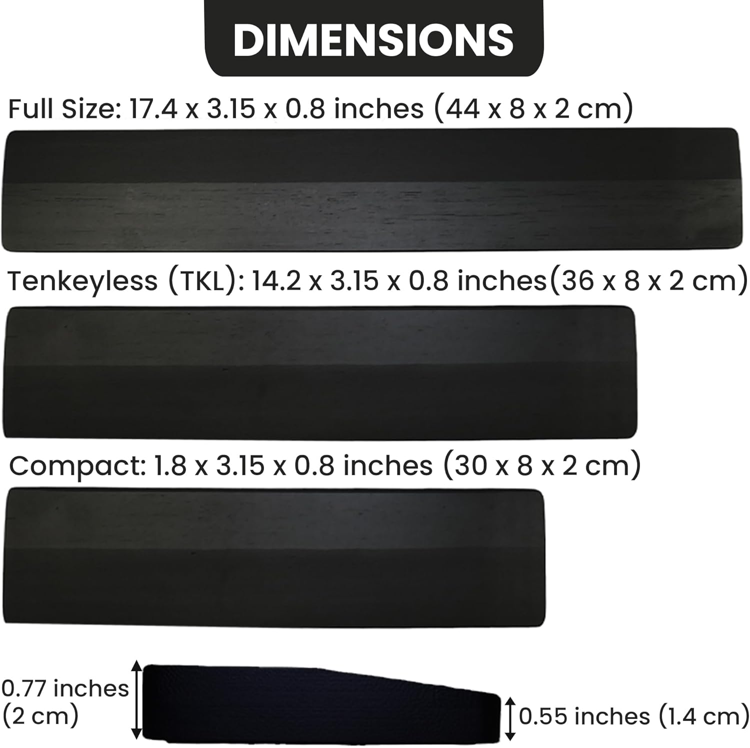 Specification: Kothar Wooden Keyboard Wrist Rest (Compact, Black)