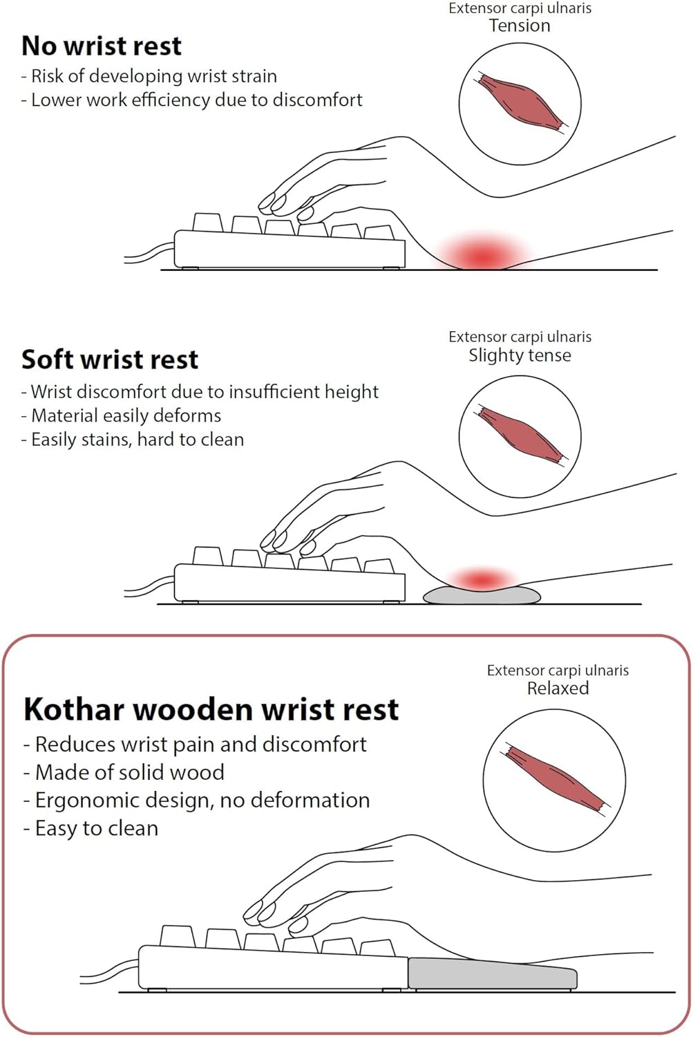 Premium Material: Crafted from high-quality wood/bamboo, the Kothar Keyboard Wrist Rest provides a natural and elegant look while offering durability and comfort.