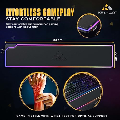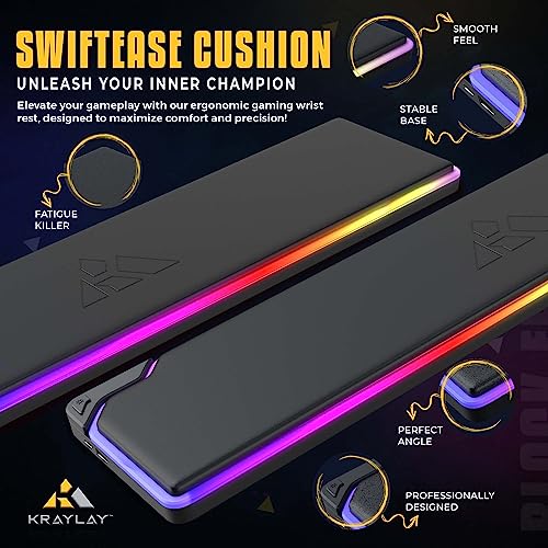 Kraylay RGB Backlit Gaming Wrist Rest | RGB Wrist Support for Keyboard | Keyboard Wrist Rest with 14 Color Modes | 17x4x1 Inches Wrist Pad for Keyboard | Wrist Rest for Computer, Laptop, | Black