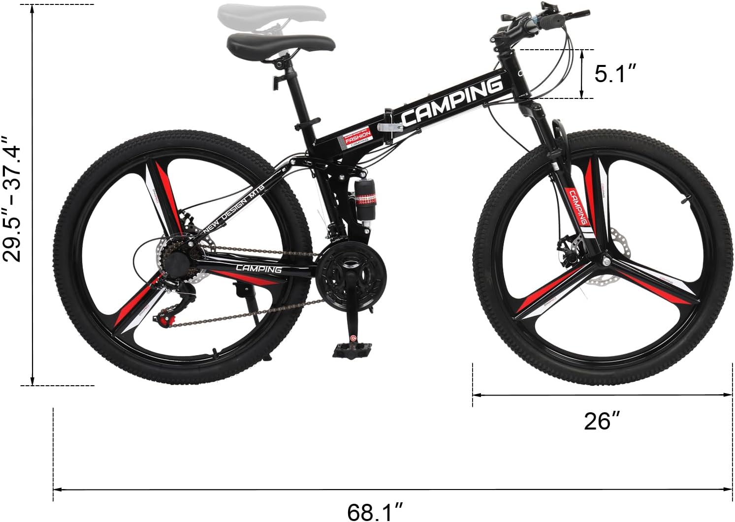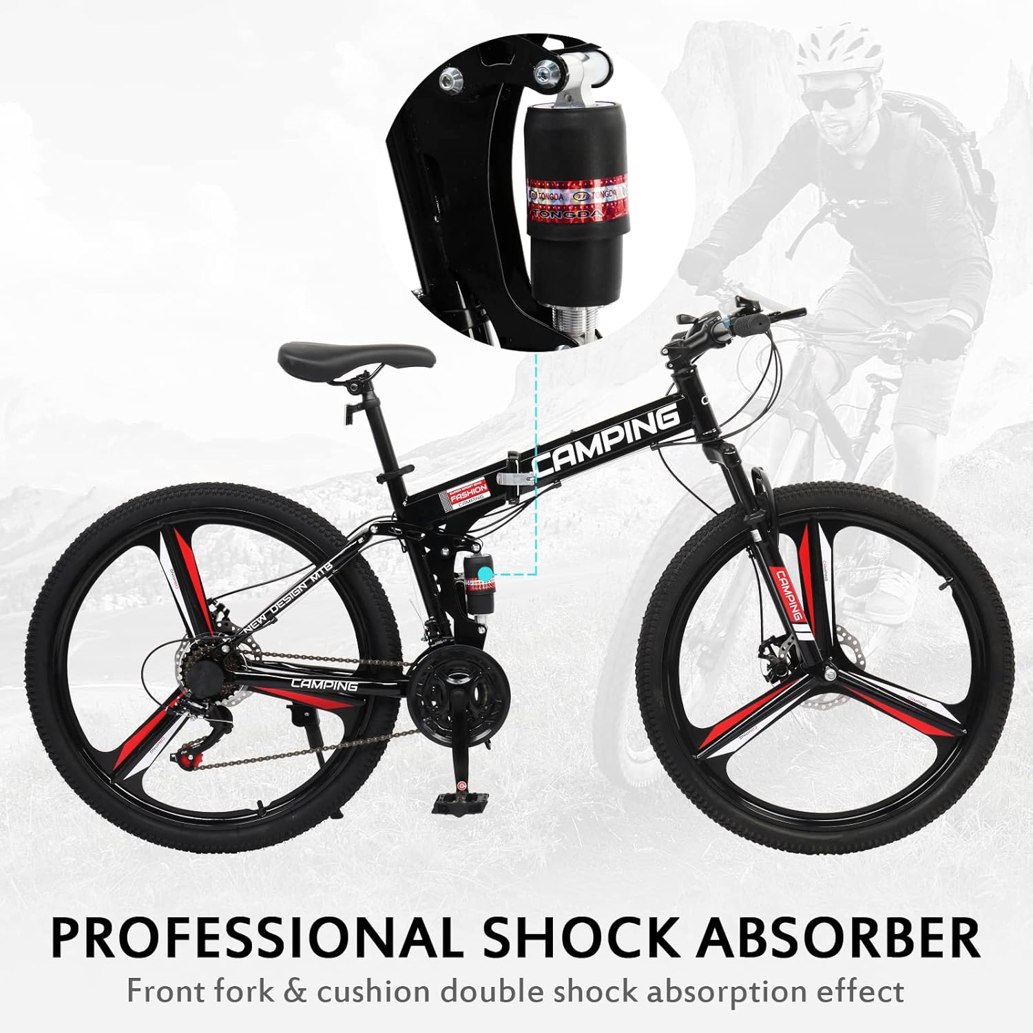 Specification: Ktaxon 26 Inch Folding Bike, 21 Speeds Foldable Bikes for Adults, Bicycle for Men & Women with Full-Suspension, Unique 3 Spoke Alloy Wheel, Dual Disc Brake, Quick Release and Adjustable Saddle