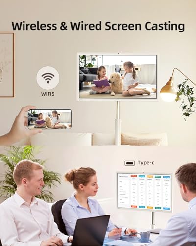 Wireless & Wired Projection: This TV tablet on wheels offer both wired and wireless projection options, including Wi-Fi 5, Bluetooth 5.1 and Type-C port, allowing you to choose the best method and easily mirror the content on your phone, tablet, laptop, game controller, etc