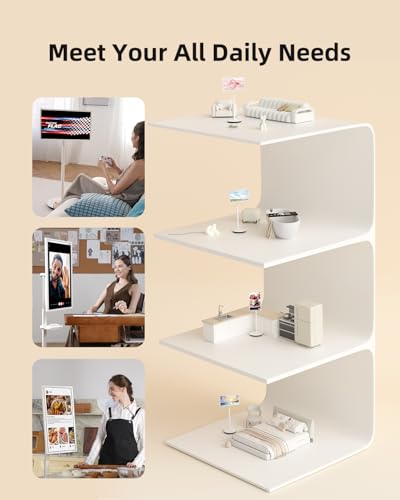Moveable Design & Long Battery Life: With 5 silent swivel casters, you can effortlessly roll this portable tablet wherever you want. The 9500mAh battery enables you to use this rolling monitor up to 6 hours, fully enjoying the movies, shows, games or works without being tied to an outlet, perfect for home or outdoor gatherings