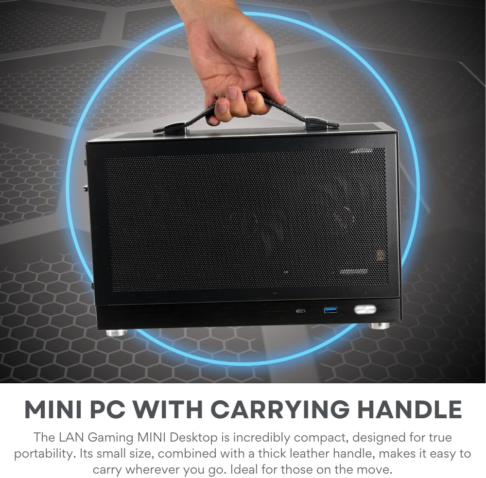 The LAN Gaming MINI Computer is perfect for LAN parties and BYOC events. Its thick leather handle makes it highly portable and easy to carry anywhere. Perfectly compact, high-performance desktop.