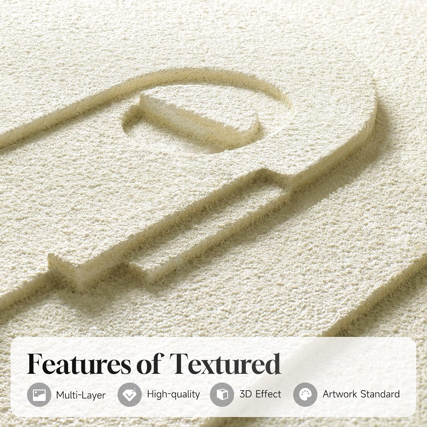 Framed 3D Textured Wall Art: Modern abstract geometric artwork featuring a set of three extra-large framed 3D textured pieces (24×36 inches each, 36″H × 72″W total). Crafted with hand-applied textured pigments on multi-layered lightweight boards, the artwork delivers a striking visual effect and an authentic tactile texture. The reinforced frame adds stability and long-lasting durability. Due to the handcrafted textured process, subtle tone variations may appear under different lighting (cool or warm). Slight color differences may occur across displays. Please refer to the actual product