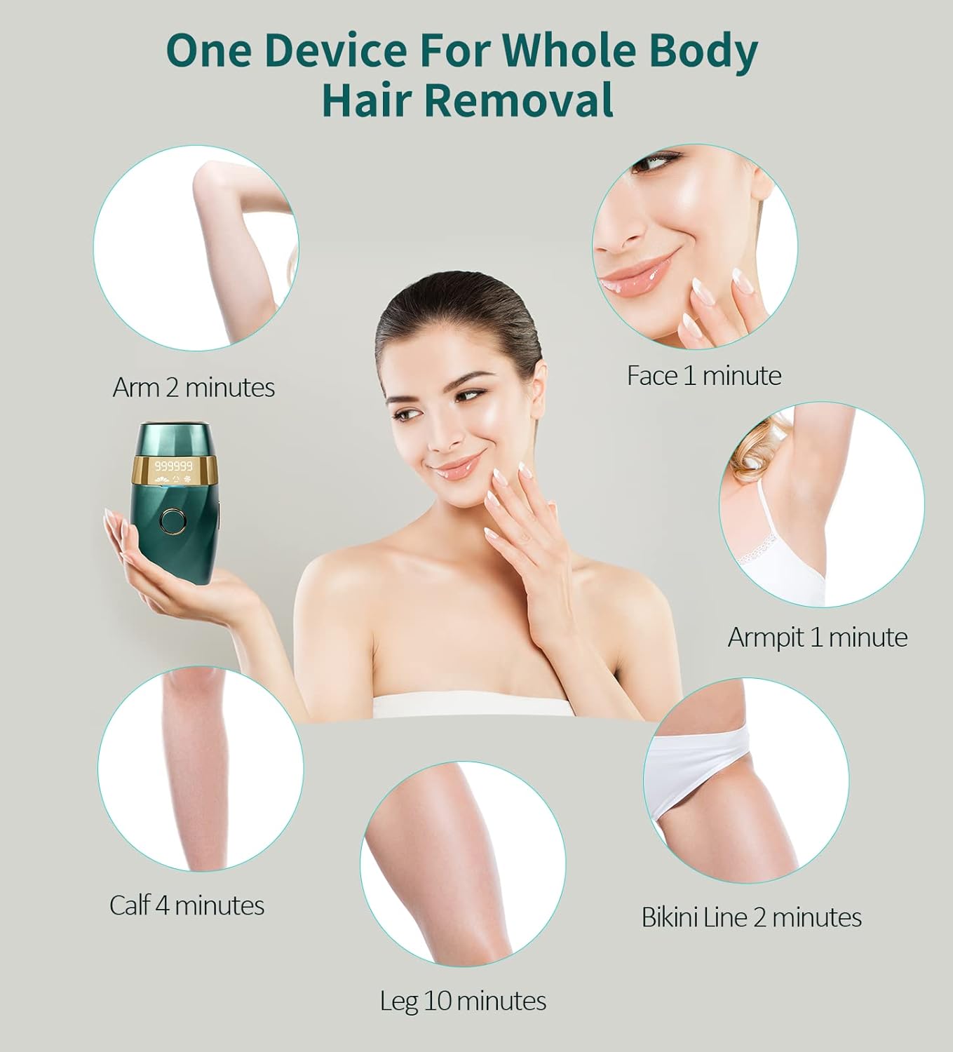 【Upgrade 999,900 Flashes】The velvvibe Hair Remover has been upgraded to 999,900 flashes, which is enough for lifelong use. You will never need to buy a replacement cartridge for your hair removal device which is an economical at-home solution.