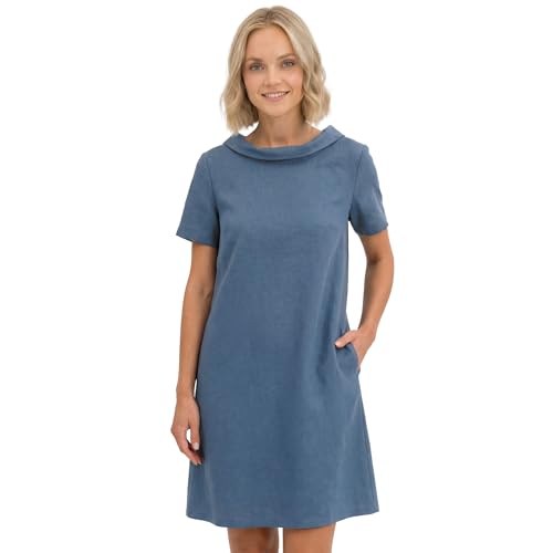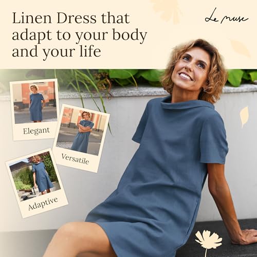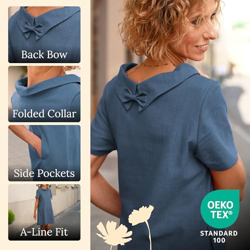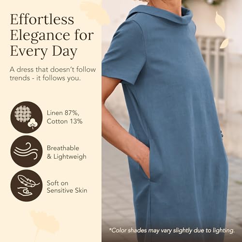 LeMuse Women’s Linen A-Line Dress – Short Sleeve Above The Knee Casual Dress with Pockets, Breathable Lightweight Fabric, Flattering Fit for All Body Types, Versatile Wear for All Seasons – Blue (L)