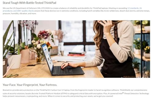 As always, the ThinkPad X1 Carbon Gen 12 has gone through multiple testing procedures. Whether you’re in the middle of the desert during a dust storm or in the Alaskan wilderness, the ThinkPad has been tested for extreme high and low temperatures as well as sand and dust. Other tests include: mechanical shock, vibration, shipboard vibration, humidity, fungus, explore atmosphere, altitude and solar radiation.