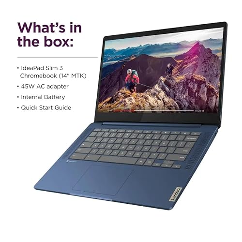 Lenovo IdeaPad Slim 3 Chromebook – 14” Touchscreen Full HD Display • 8-Core MediaTek Kompanio 520 CPU • 4GB RAM • 64GB eMMC & 256GB Micro SD Card • Wi-Fi 6 • for Business Student • Chrome OS • Blue